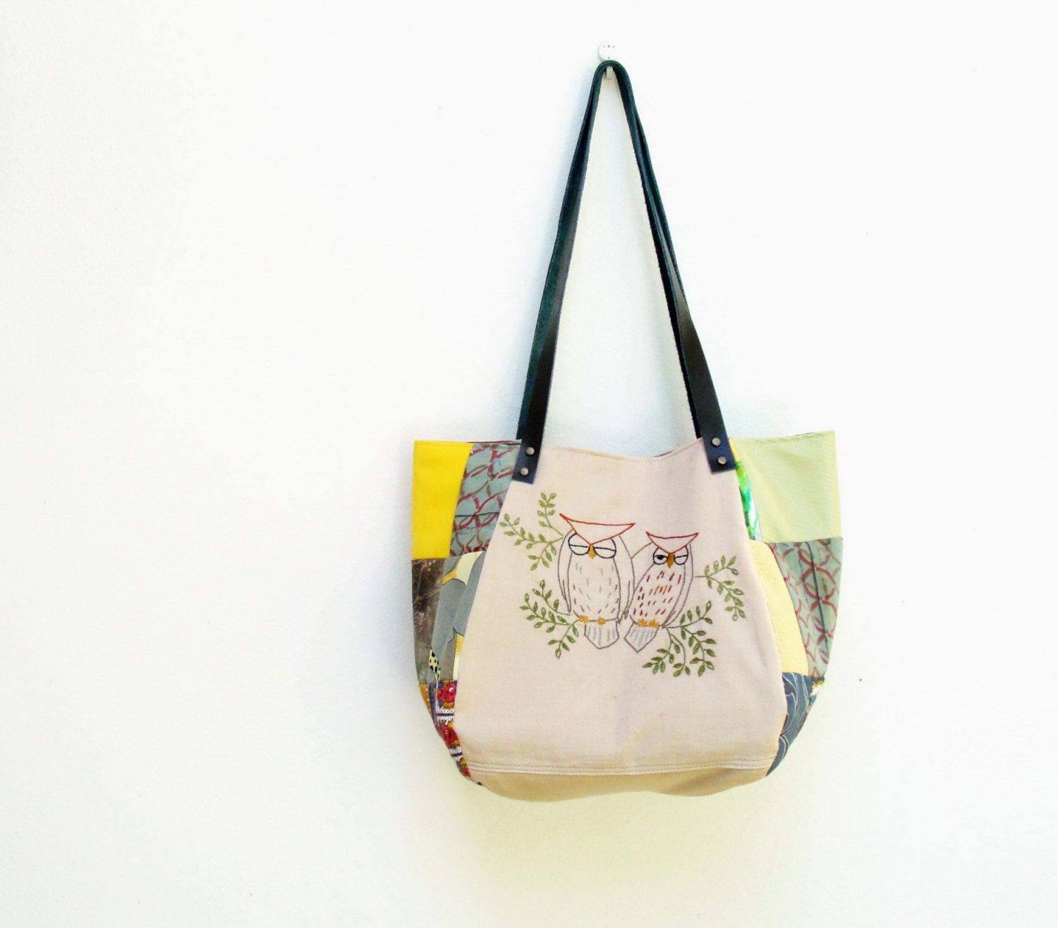 Woodland Owl Bag - Vintage Embroidery, Patchwork and Leather Bag