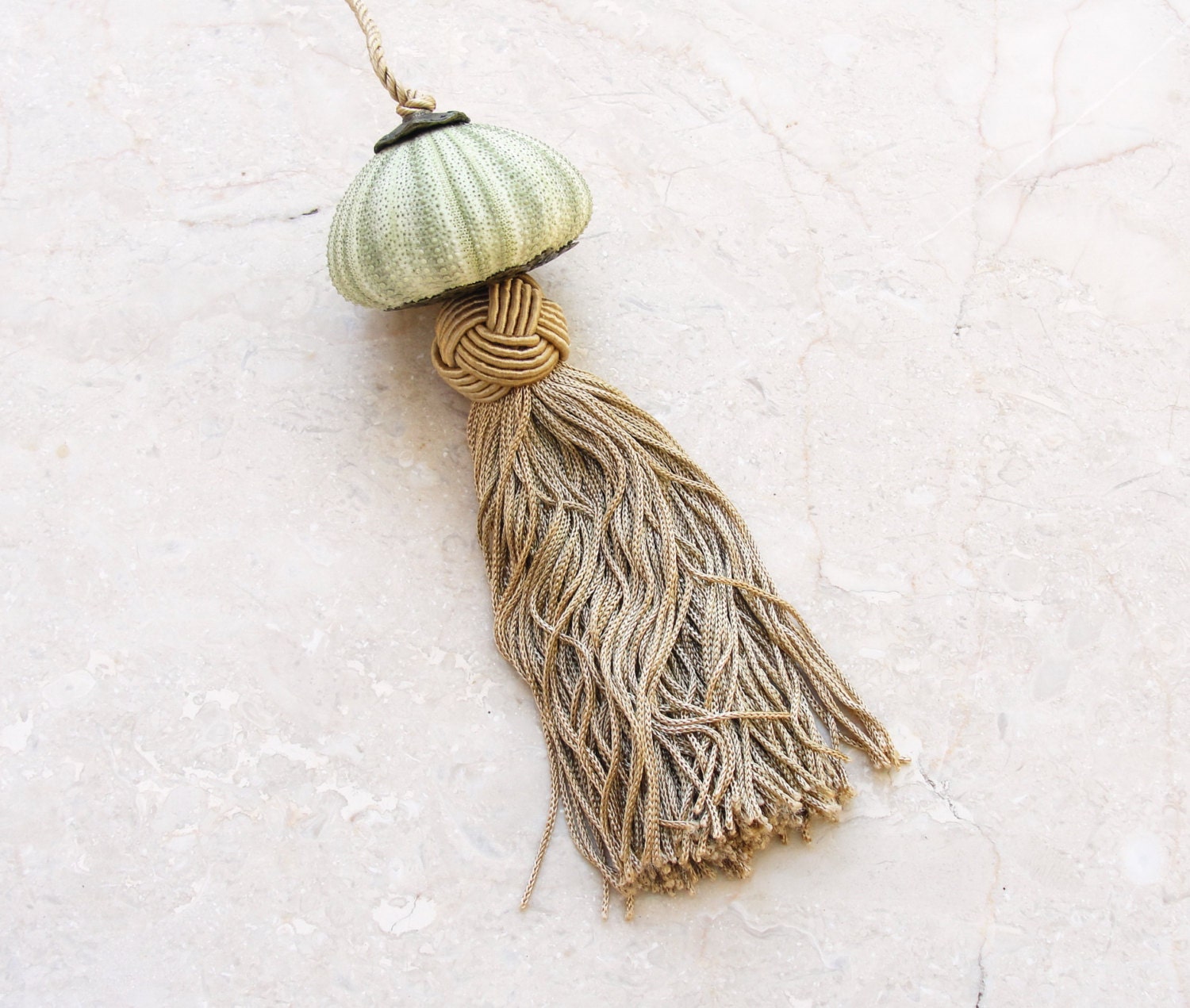 Sea Urchin Ornament Sailor's knot and Tassel - Green and Brass