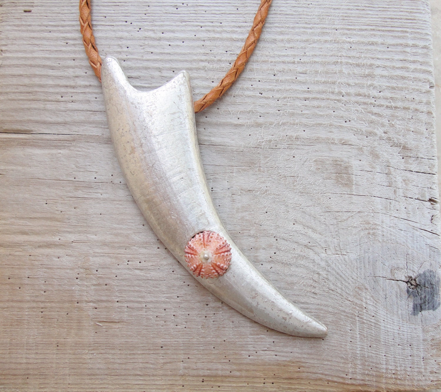 Leather Sea Urchin Necklace - Abstract Beach Jewelry
