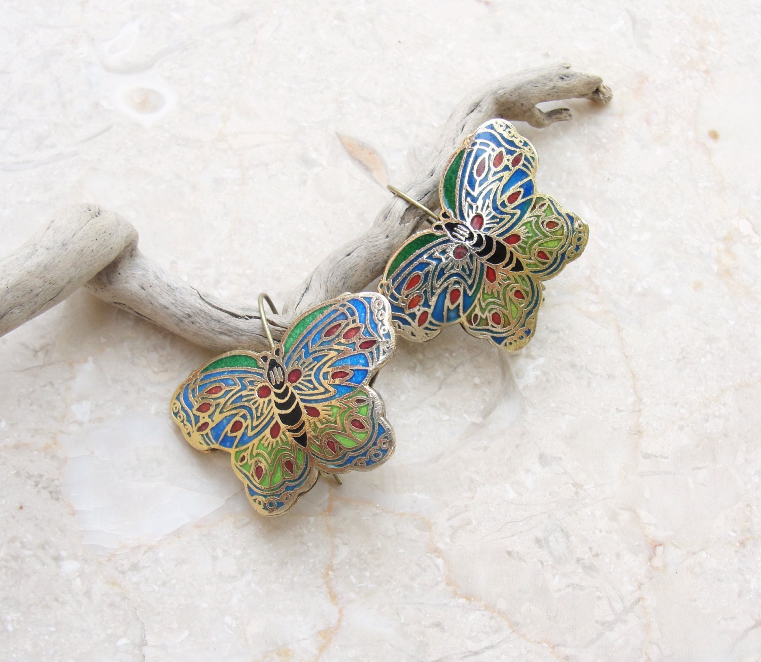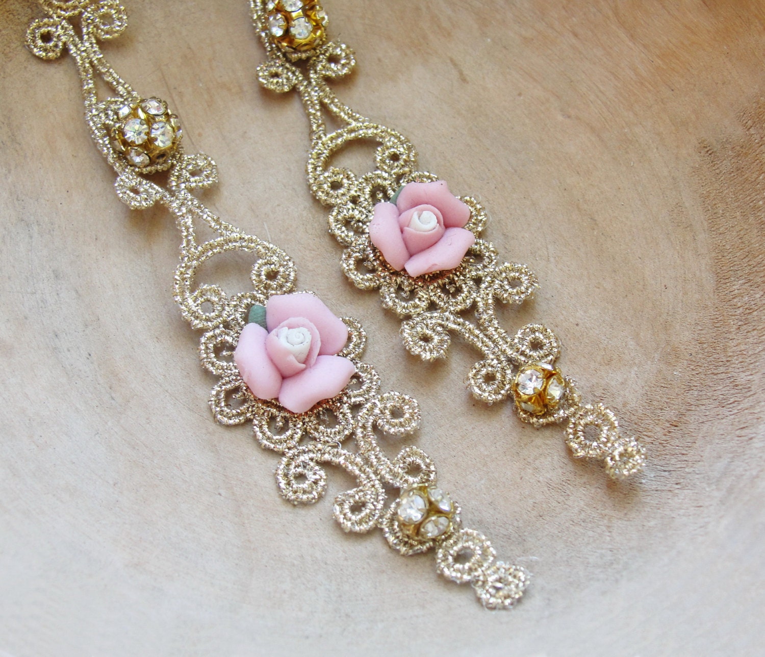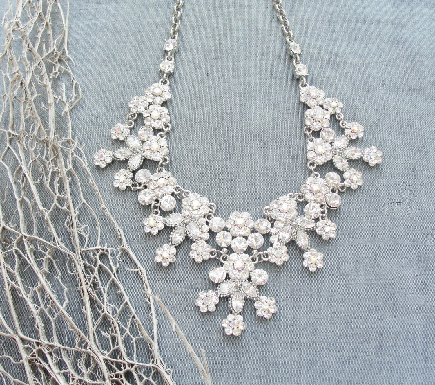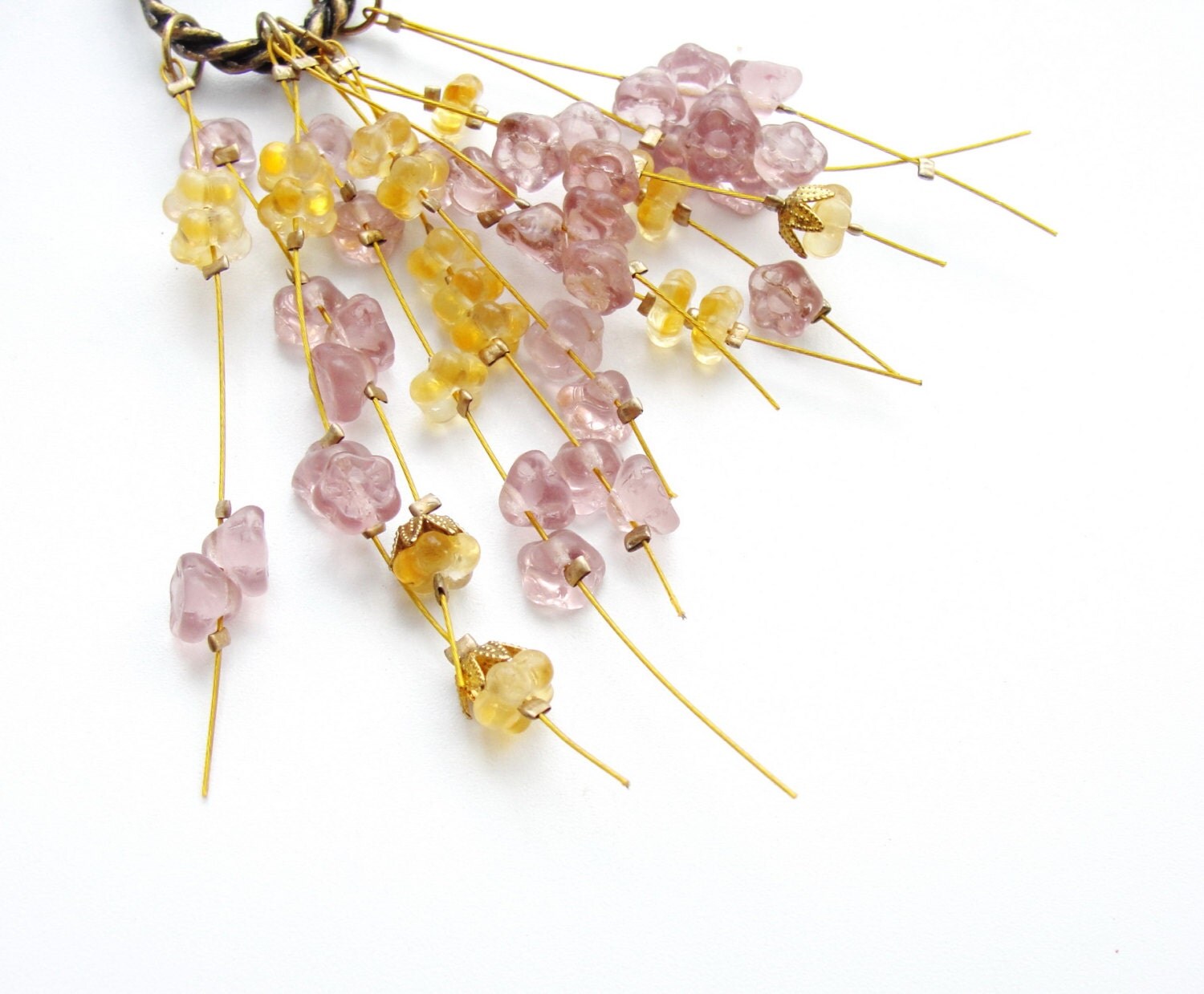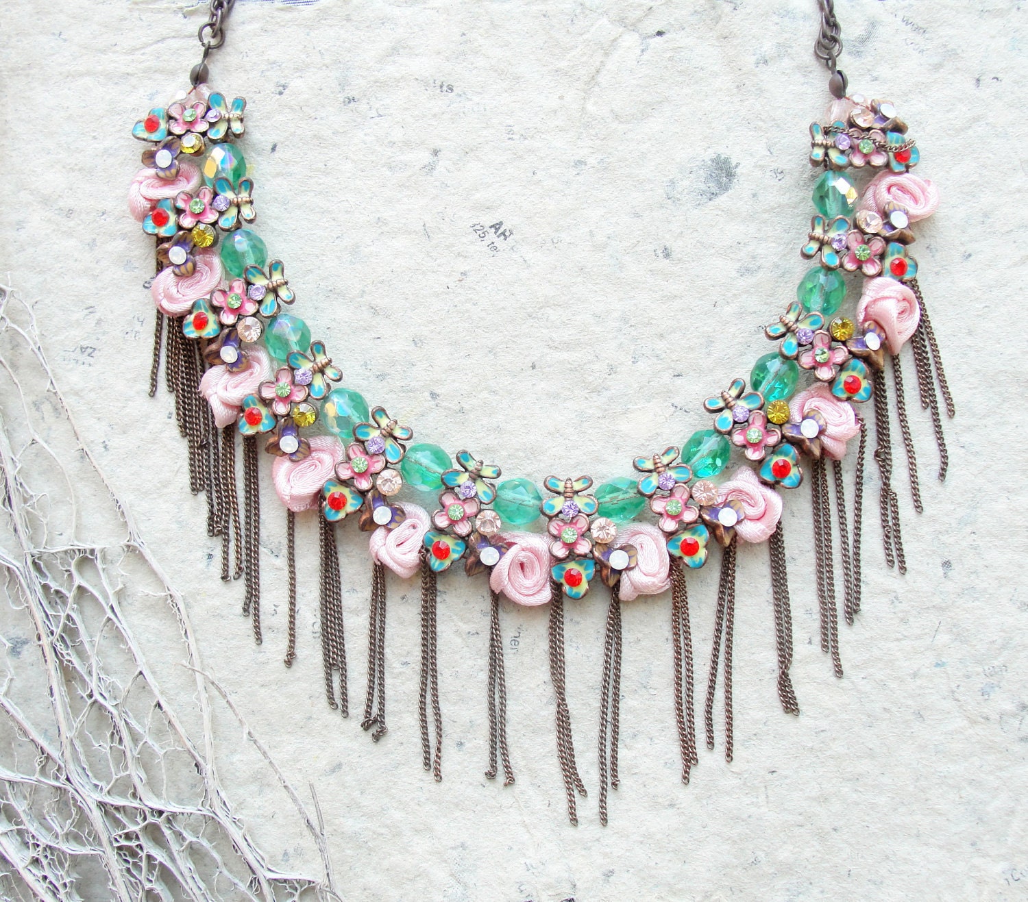 Enamel and Crystal Necklace Fabric Roses Dragonflies