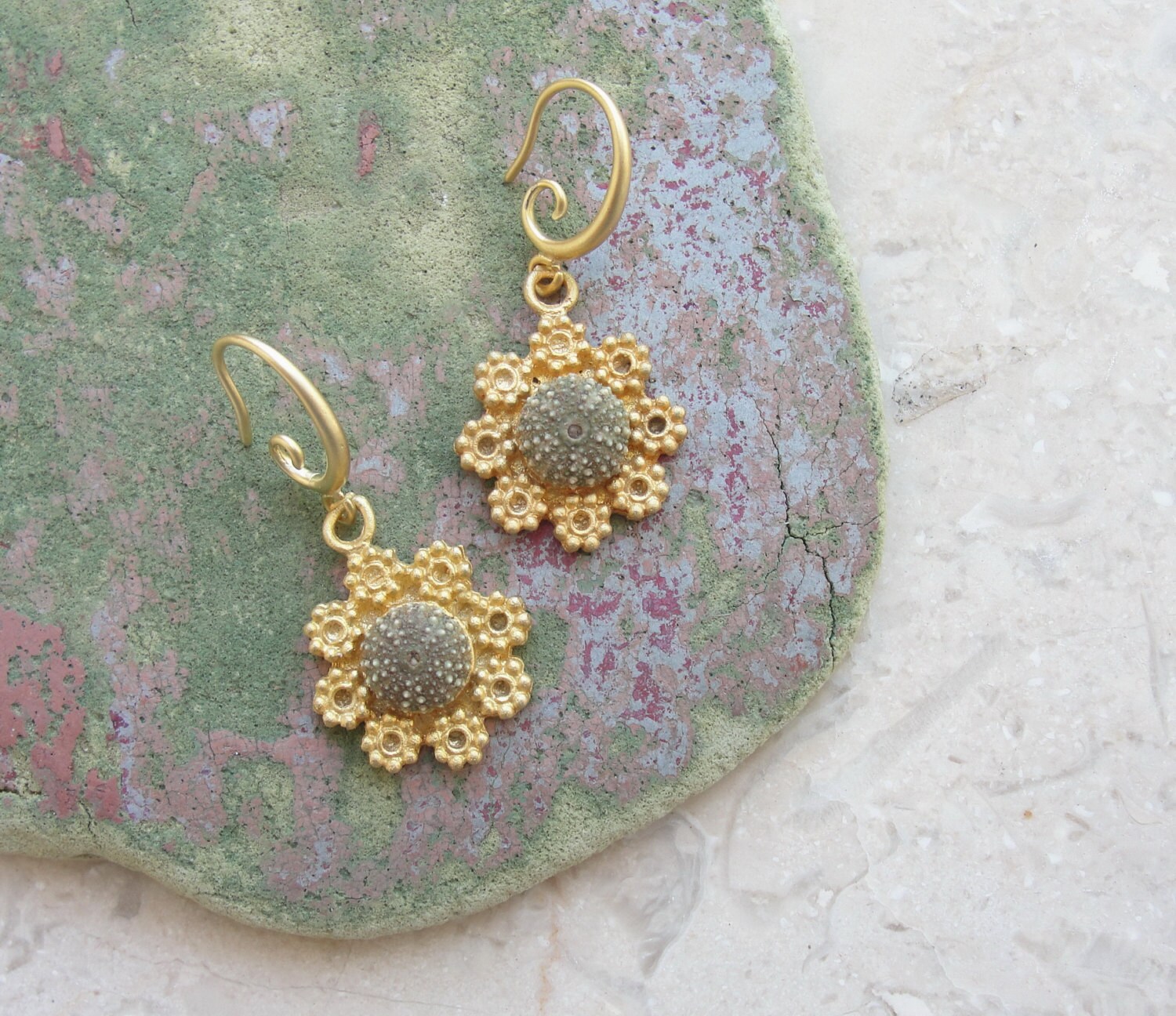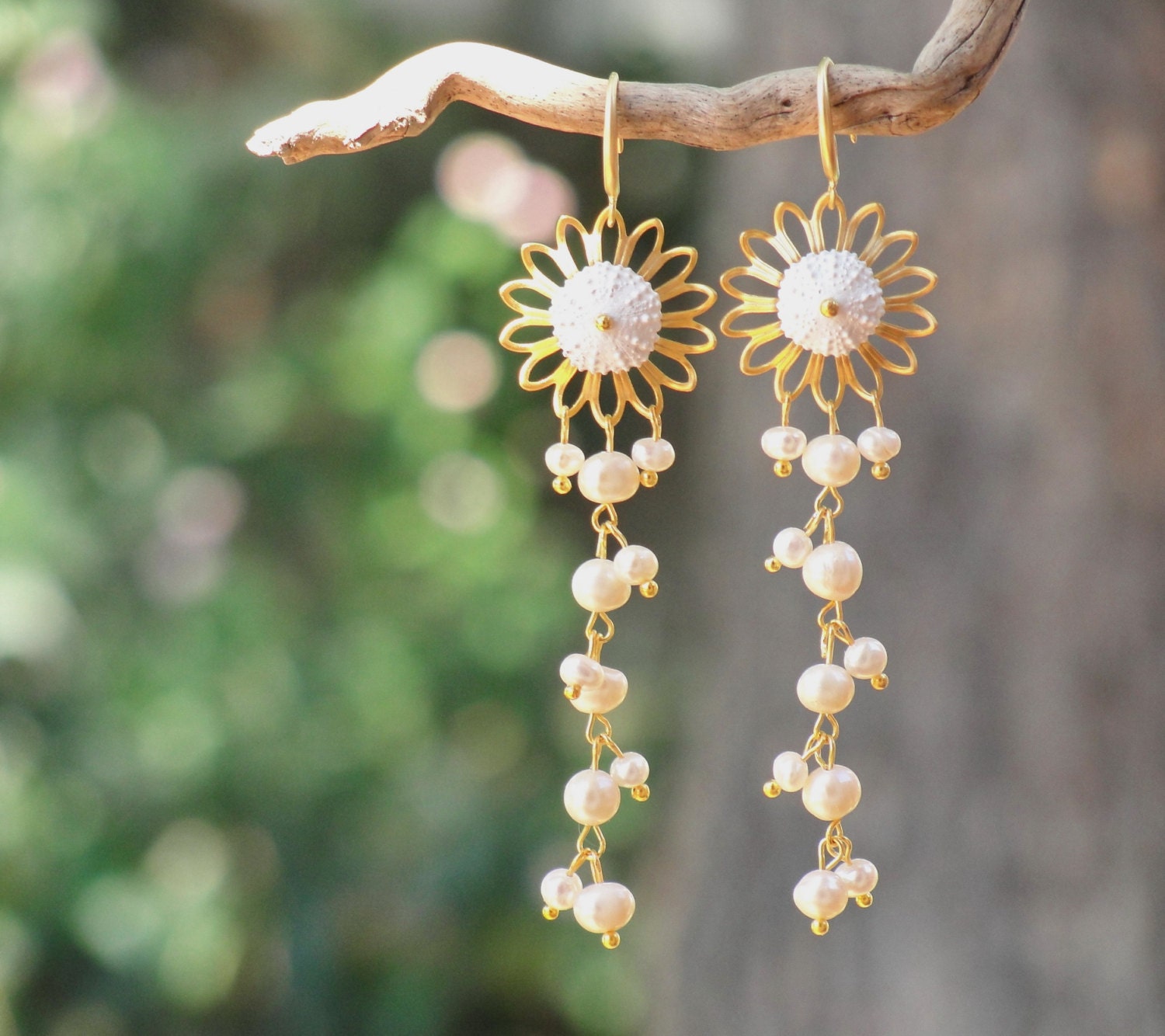 Bridal Pearl Earrings Sea Urchin Earrings Gold plated
