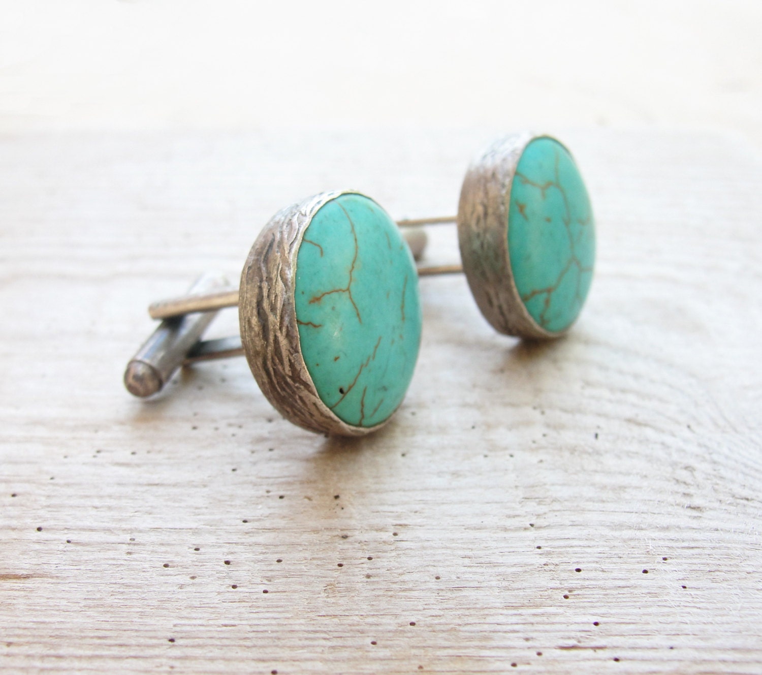 Turquoise Stone Cufflinks Bezel stone cuff links