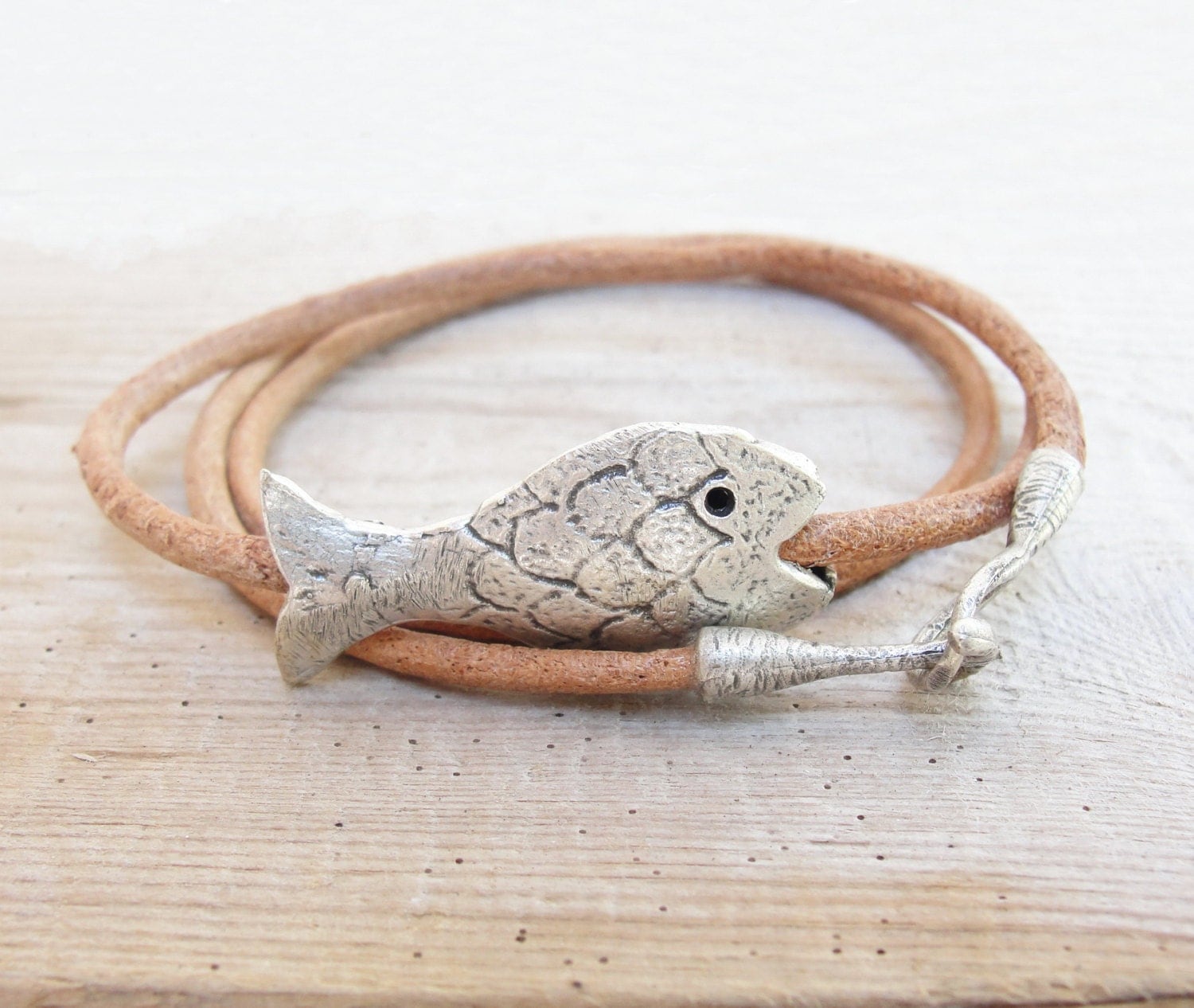 Pisces Leather Bracelet Nautical Bracelet Beach Jewelry Leather and Metal