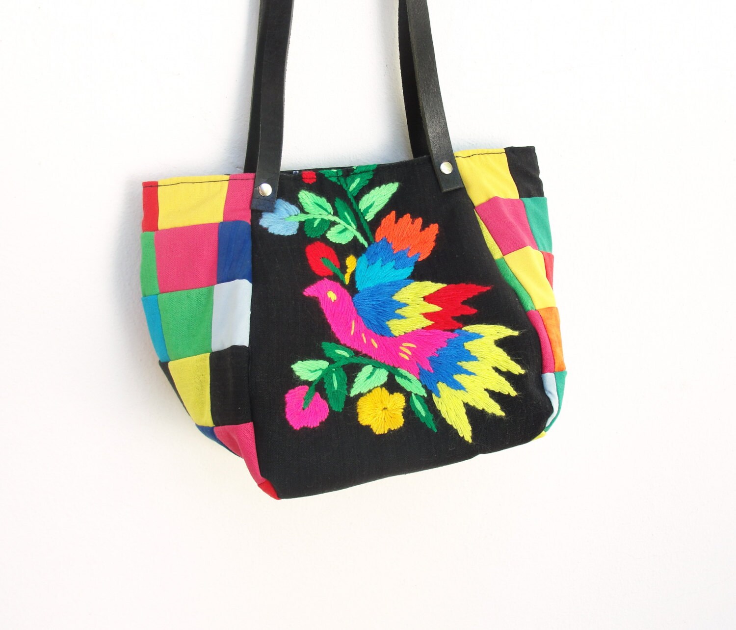 Rainbow Bird Bag - Vintage Embroidery, Patchwork and Leather Bag