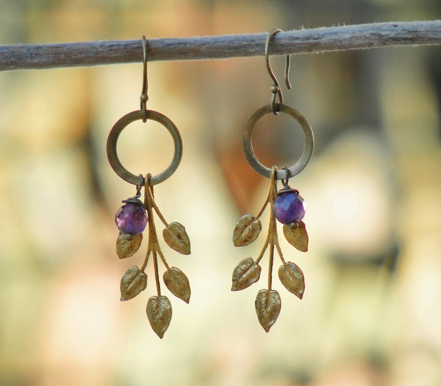 Woodland Amethyst Earrings Vintage branch Amethyst Stone
