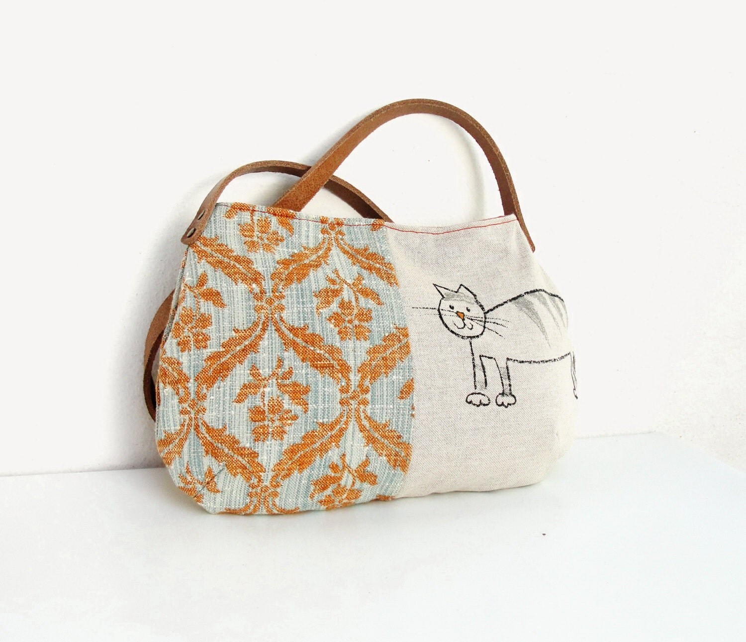 Story of a Cat and a Mouse - Purse with Linen and Leather