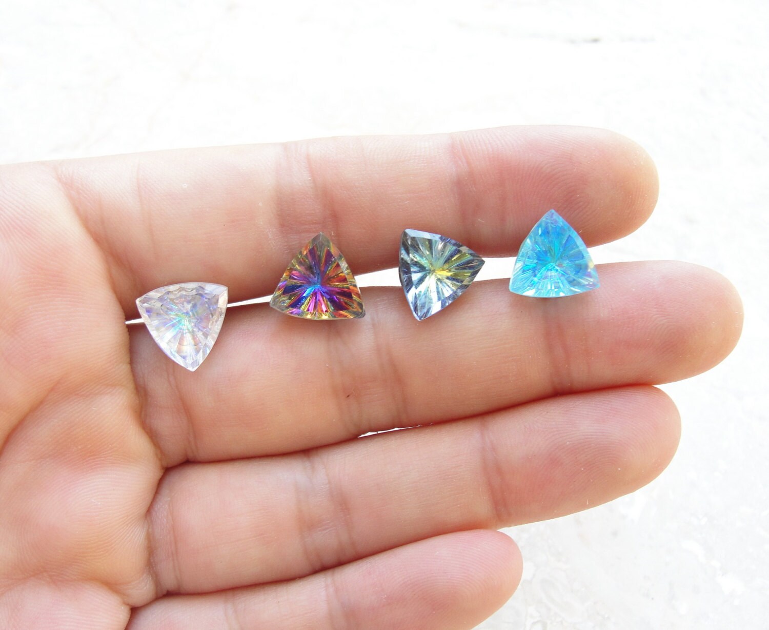 Triangle Stud Earrings Geometric Jewelry Vintage Glass Cabochon Earrings