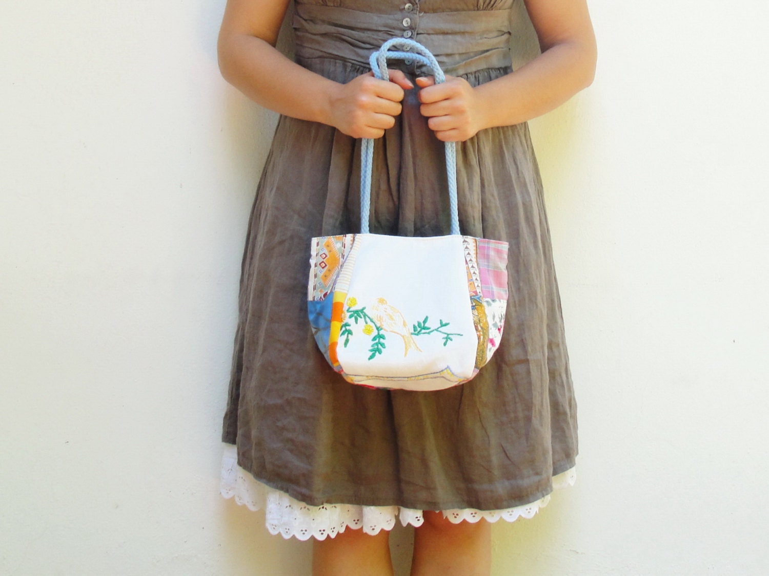 The Birds Bring the Sun Bag - Vintage Embroidery and Patchwork