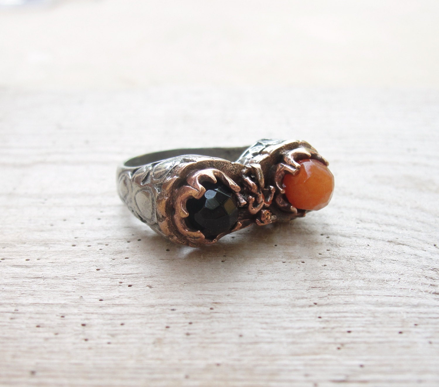 Jasper and Onyx Ring Brass Bezel Ring Stone jewelry