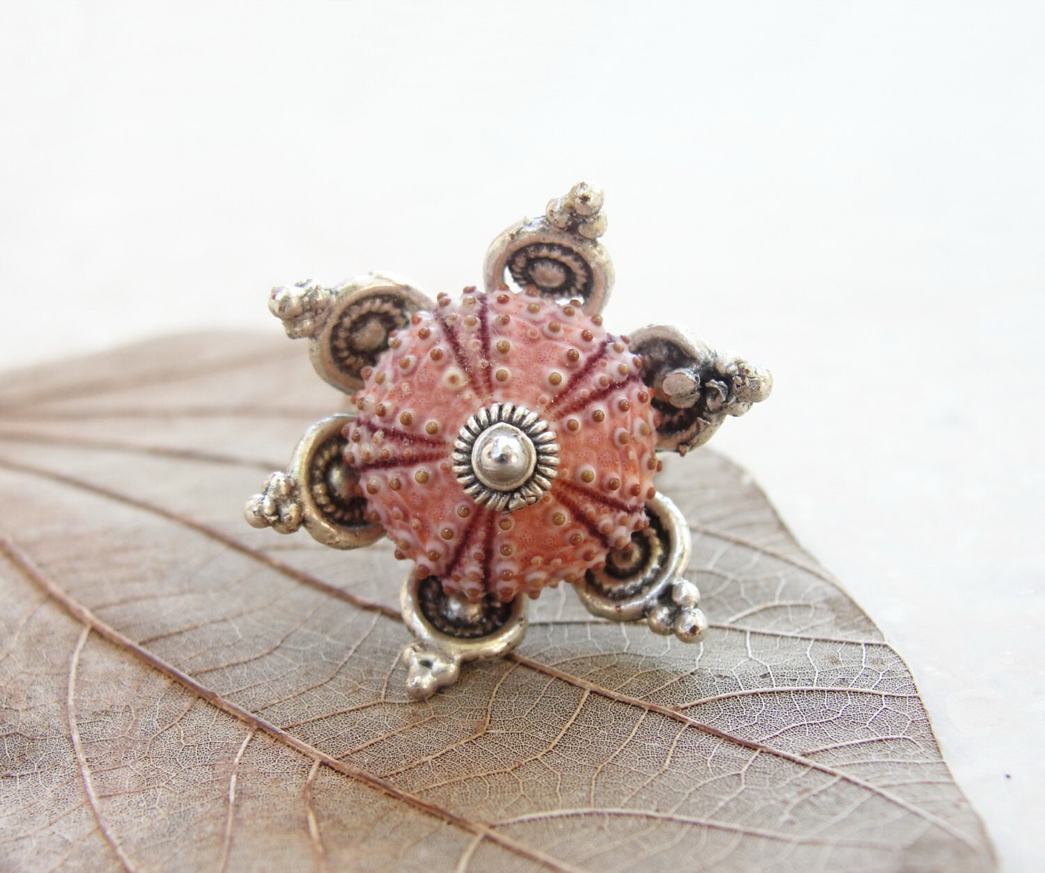 Pink Sea Urchin Flower Ring Beach Jewelry