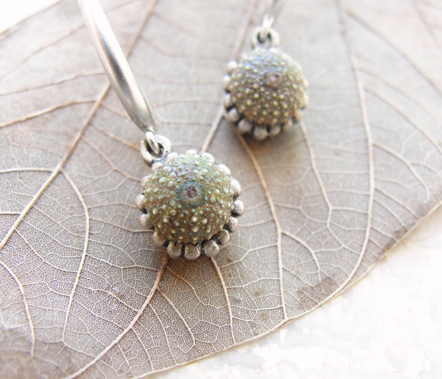 Newly listed: Brown Sterling silver Sea urchin earrings