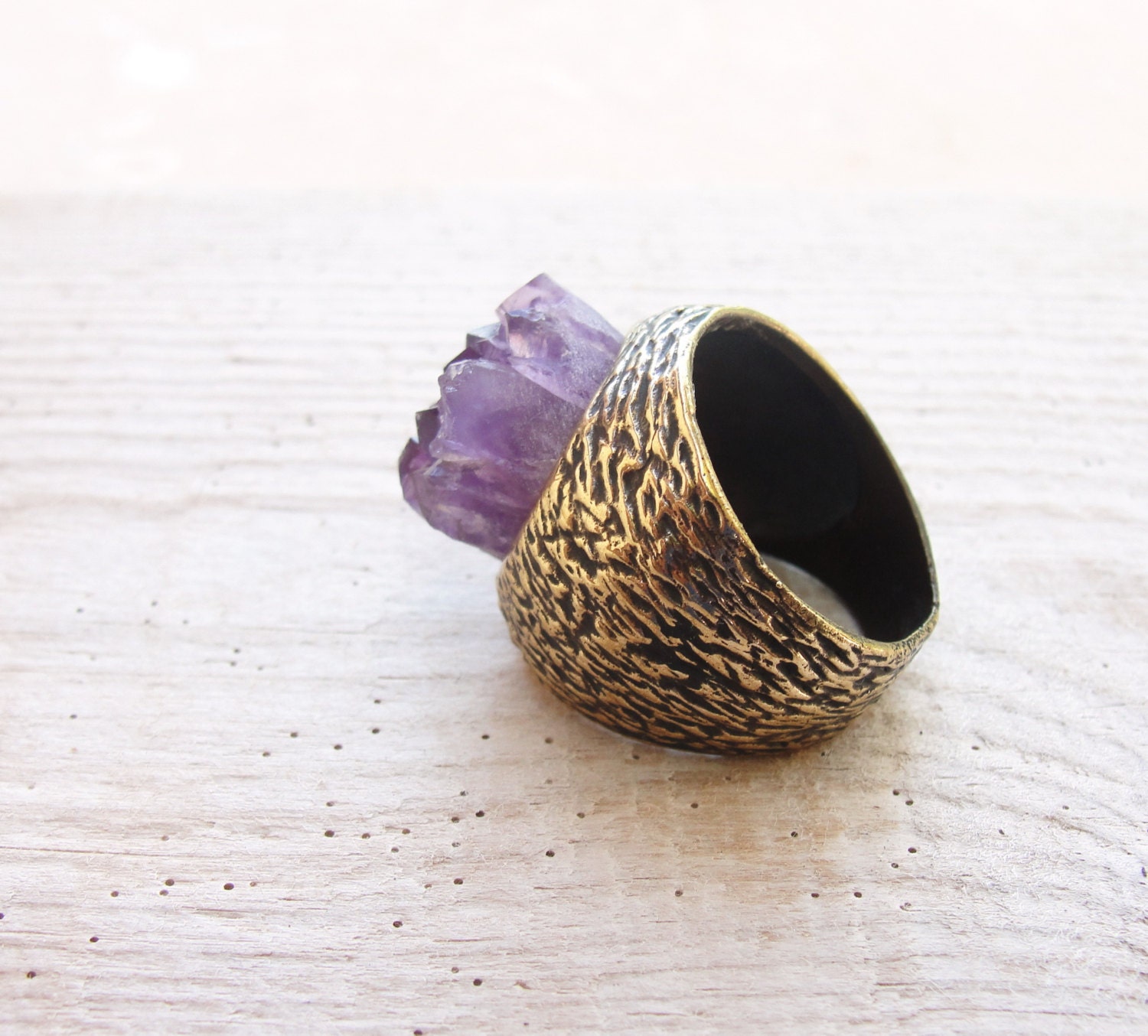 Druzy Amethyst Ring Hand formed Bronze Statement jewelry